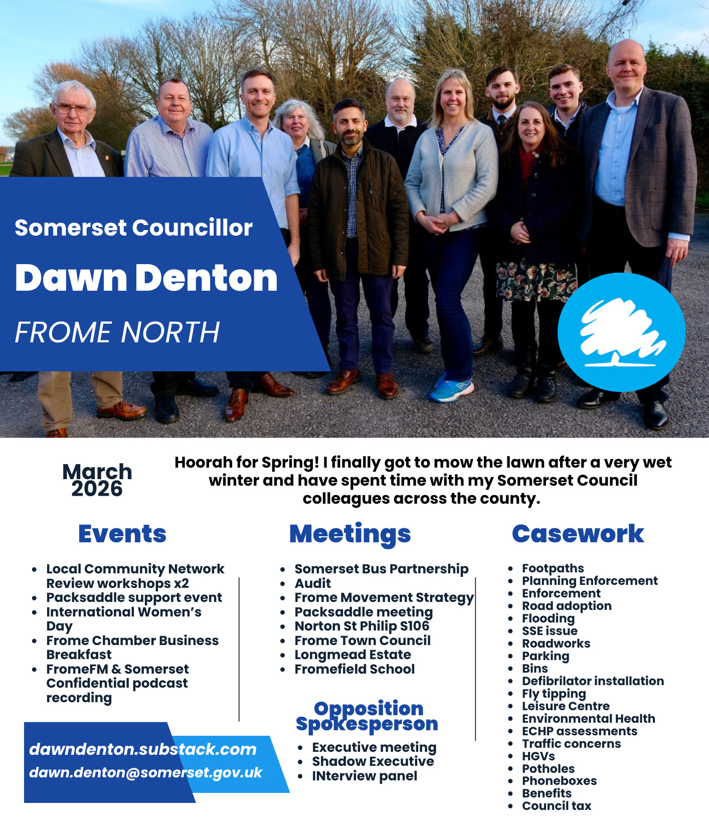 As you know, the Frome Town Council is ‘pausing’ publishing Somerset Councillor reports to get advice. They feel my reports (because I am the only Somerset Councillor that has sent in one for every of the 47 months I have been in my role) are too political. It is unfortunate for them, that we (Somerset Councillors) are elected, which is political (as are they).